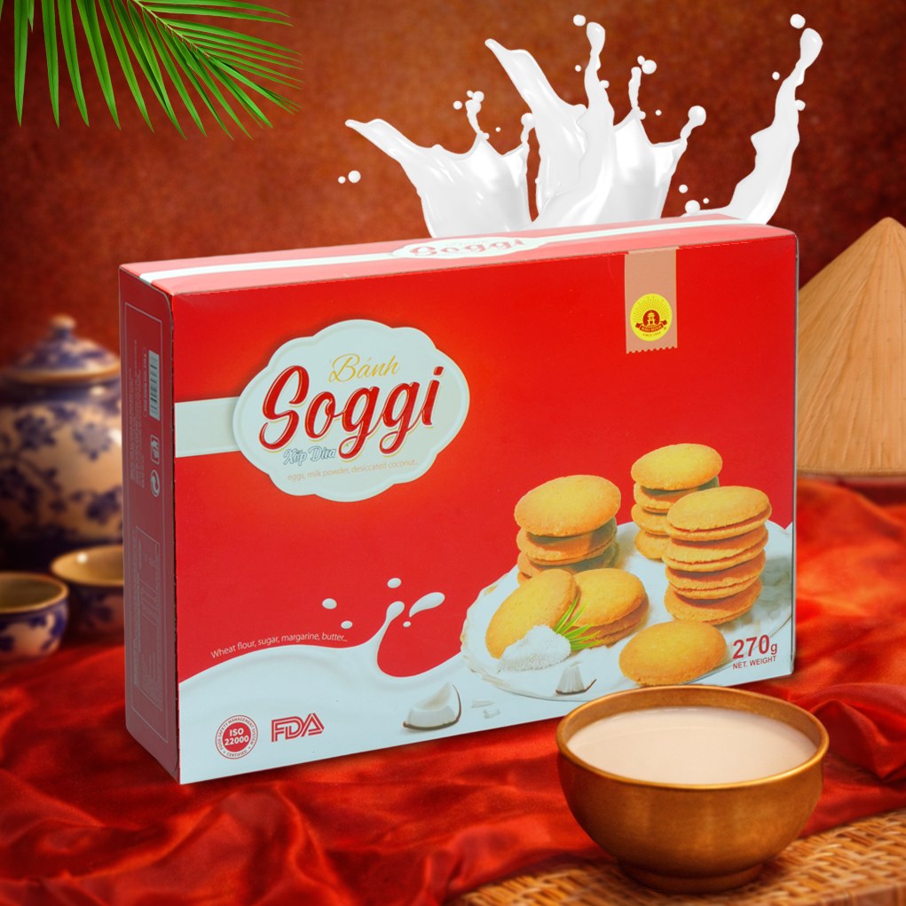 Từ những mẻ bánh quy bơ truyền thống, người thợ Việt đã biến tấu bằng cách đưa sợi dừa sấy và hương dừa béo ngọt vào công thức, làm nên một dòng bánh mang dấu ấn riêng, giòn nhẹ, thoảng béo, thơm mùi dừa đặc trưng. Bánh Soggi Bảo Minh xuất hiện phổ biến trong khay bánh Tết, trong những buổi trà chiều và cả như món quà nhỏ gửi gắm tinh thần của miền nhiệt đới Việt Nam, mộc mạc, tươi vui và hào phóng hương vị. Từng chiếc bánh là sự kết hợp của kỹ thuật nướng hiện đại với nét duyên nguyên liệu truyền thống, mang đến trải nghiệm vừa mới mẻ vừa gần gũi cho người thưởng thức.