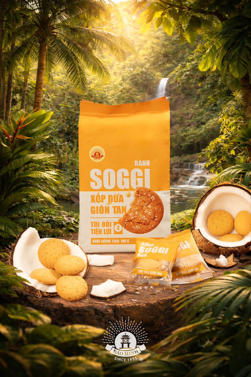 Bánh Soggi Bảo Minh là dòng bánh hiện đại, từ cảm hứng phong cách bánh quy phương Tây và nguyên liệu bản địa vùng nhiệt đới Việt Nam, bánh xốp giòn tan cùng sợi dừa thanh mát, thơm bùi, béo ngậy được tăng cường Protein, lipit… đảm bảo chất dinh dưỡng mà không lo bị béo.