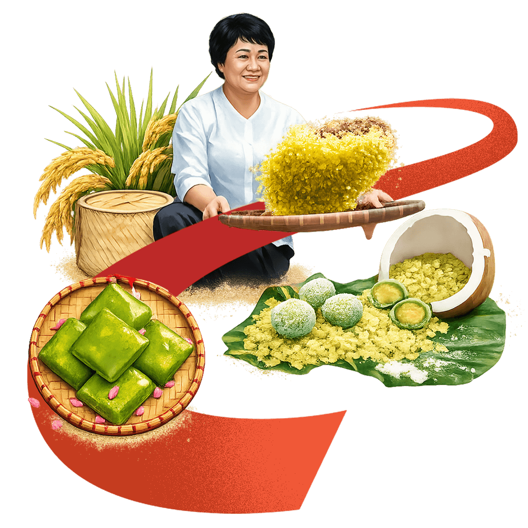 - Với 2 chiếc nồi nấu bánh cốm thủ công cũng là nơi bắt đầu của niềm tin, hy vọng và sự tỉ mẩn trong từng chiếc bánh ngon trên hành trình phát triển những dòng bánh kẹo truyền thống Việt Nam.