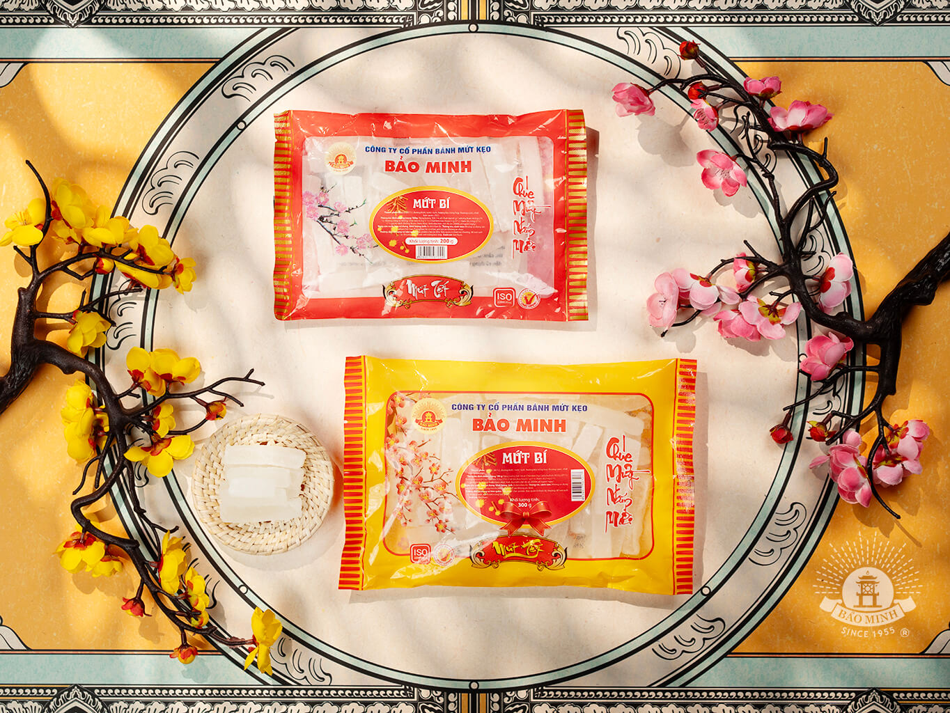 Mứt Bí được sản xuất và phân phối bởi Công ty CP Bánh mứt kẹo Bảo Minh