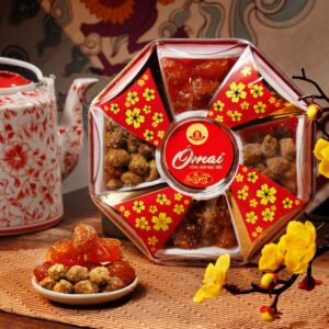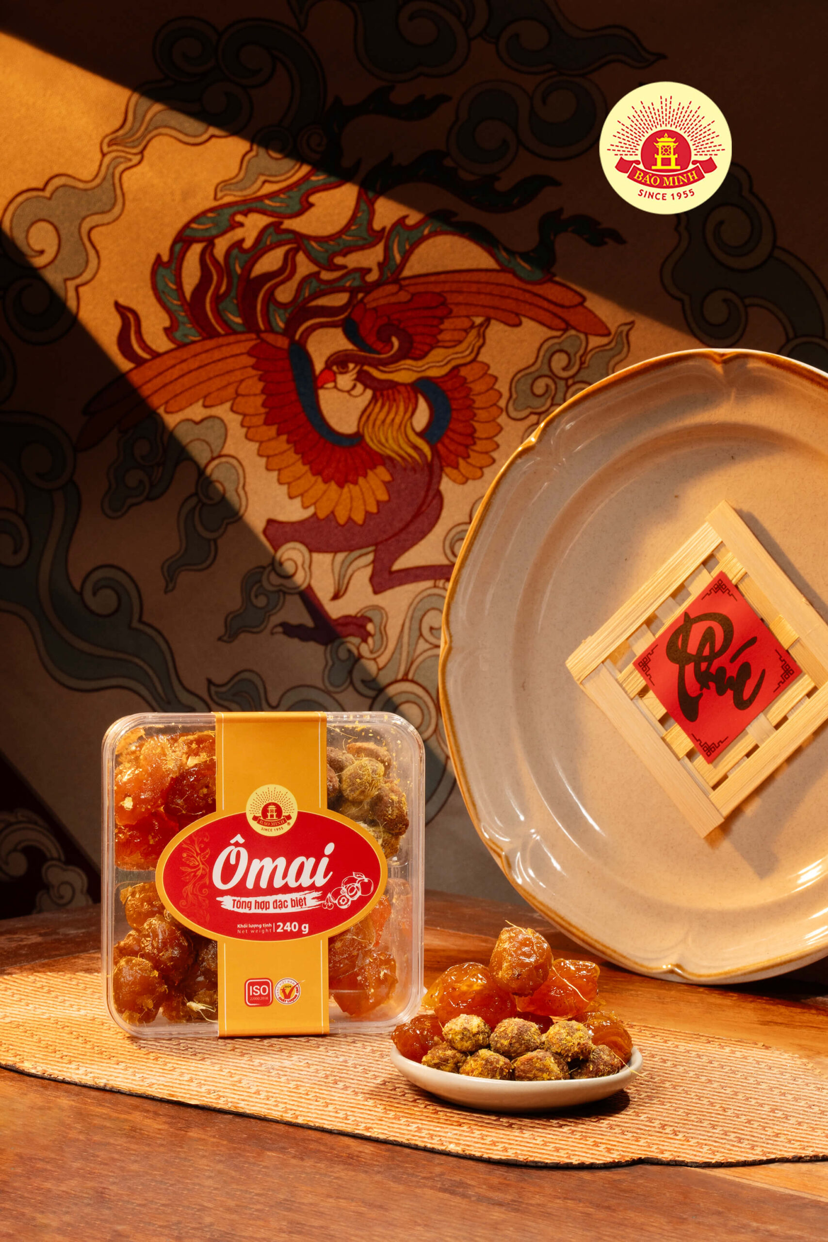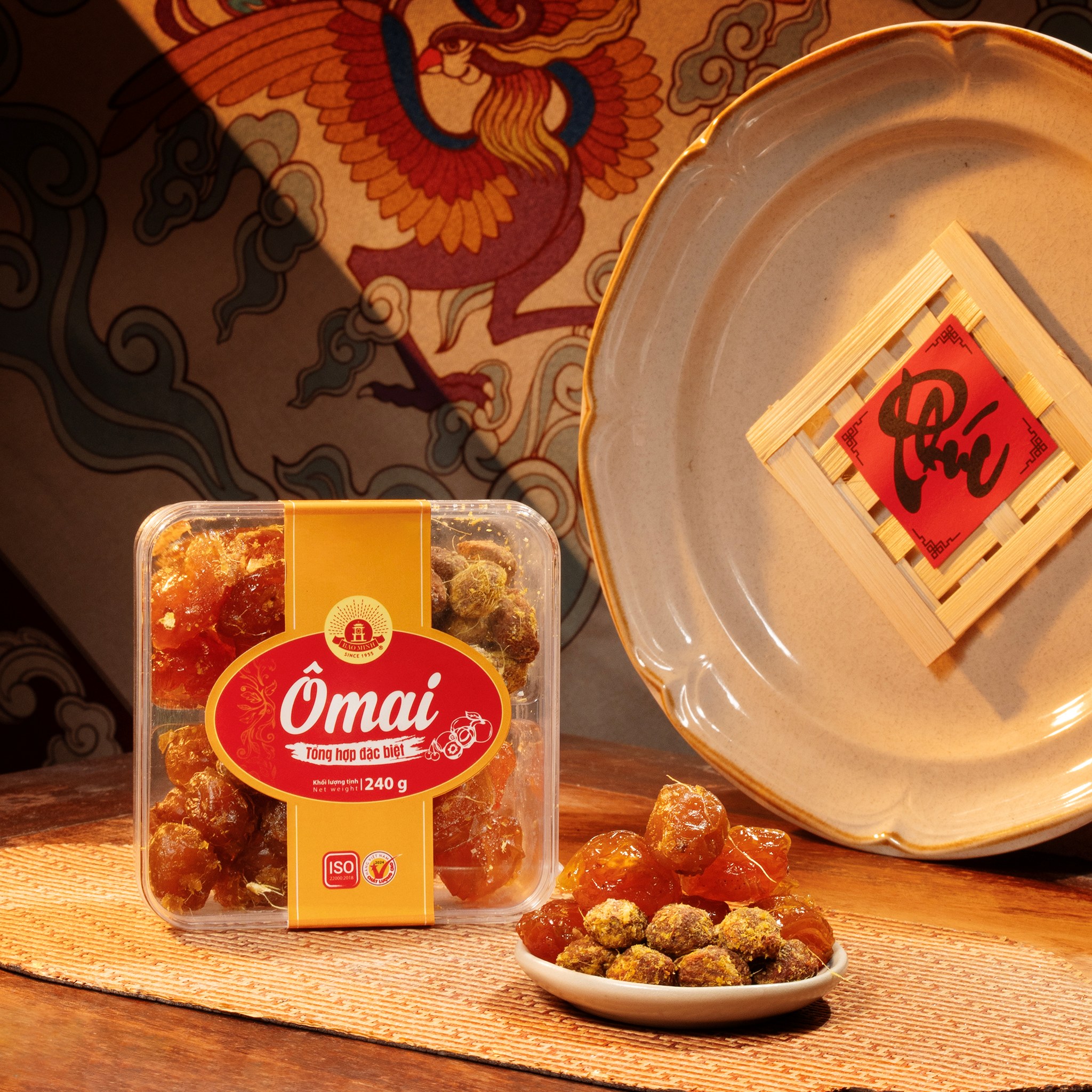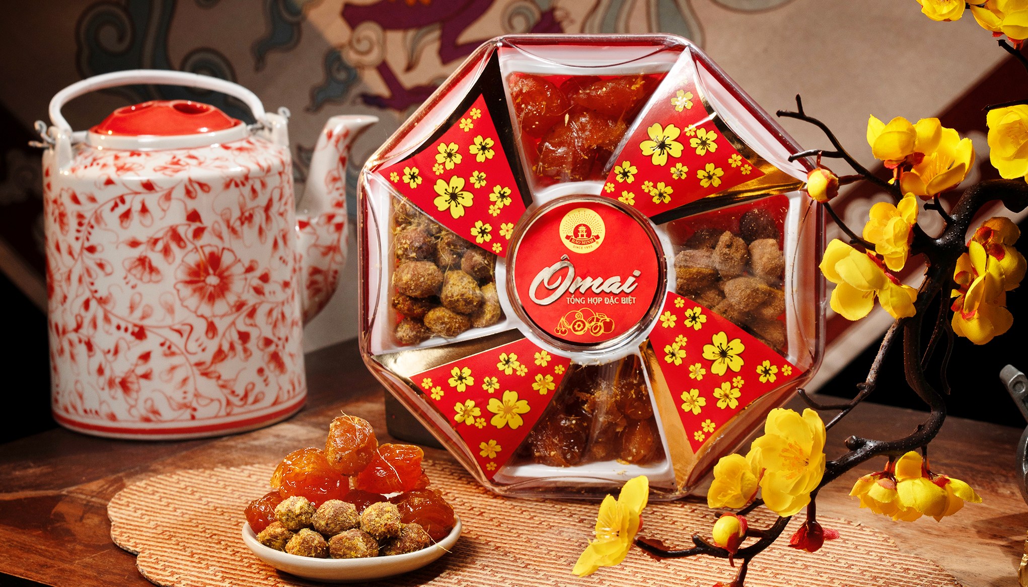Một thức quà cổ truyền gắn liền với văn hóa ẩm thực của người Việt, Ô mai Tết được làm từ các loại quả như mơ, mận qua quá trình ngâm, sấy, xào,.. tẩm đường, muối, ớt,.. tạo nên vị chua cay thanh, ngọt dịu, hòa cùng hậu vị mặn nhẹ đặc trưng. Ô mai là món ăn vặt & là món tráng miệng không thể thiếu trong khay mứt Tết, mang theo lời chúc sung túc, may mắn và hương Xuân đoàn viên.