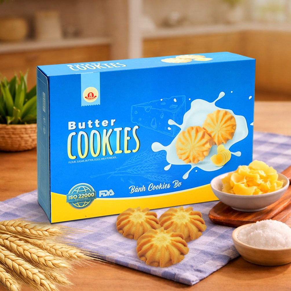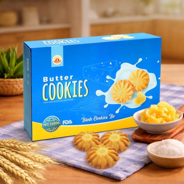 Bánh Cookies Bơ Bảo Minh được làm từ nguyên liệu chọn lọc cao cấp áp dụng quy trình quản lý chất lượng ISO 22000:2018. Bánh Cookies Bơ Bảo Minh có vị bùi thơm, giòn tan, đặc biệt ít ngọt.