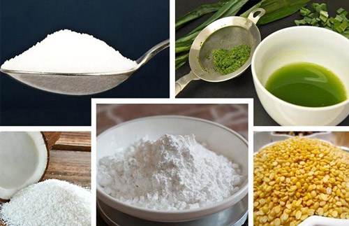 Bánh Xu Xê khi ăn có độ dai giòn sần sật chính là nhờ bột năng. Đây là loại bột rất quen thuộc trong nhiều công thức bánh của người Việt Nam. Ngoài ra, nguyên liệu làm Bánh Phu Thê đám cưới còn có đậu xanh, dừa, hạt vừng.