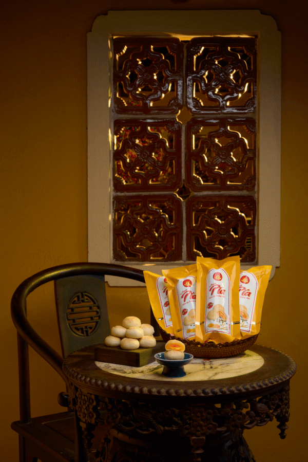 Lớp vỏ mỏng, giòn nhẹ, được xếp như hàng ngàn lớp lụa mượt mà chồng lên nhau thoảng hương thơm béo của trứng gà. Nhân bánh kim sa trứng muối dẻo mịn được biến tấu thanh vị & ít ngọt theo phong vị Bánh Pía Hà Nội, nâng trọn cảm giác thưởng thức với sự tan chảy trong miệng của từng miếng cắn.