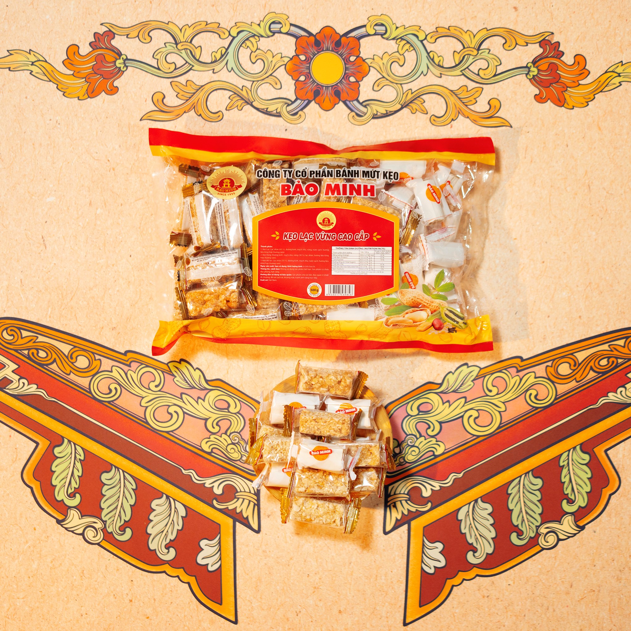 Tất cả các loại kẹo được Bảo Minh lựa chọn giống lạc đỏ từ vùng Nghệ An, là loại lạc tốt nhất để cho ra vị bùi giòn và hương thơm độc đáo. Túi kẹo hỗn hợp được đóng gói bao bì sang trọng, bắt mắt & lịch sự, thích hợp sử dụng làm món ăn vặt hằng ngày, nhâm nhi cùng với trà ấm hoặc làm quà biếu tặng.