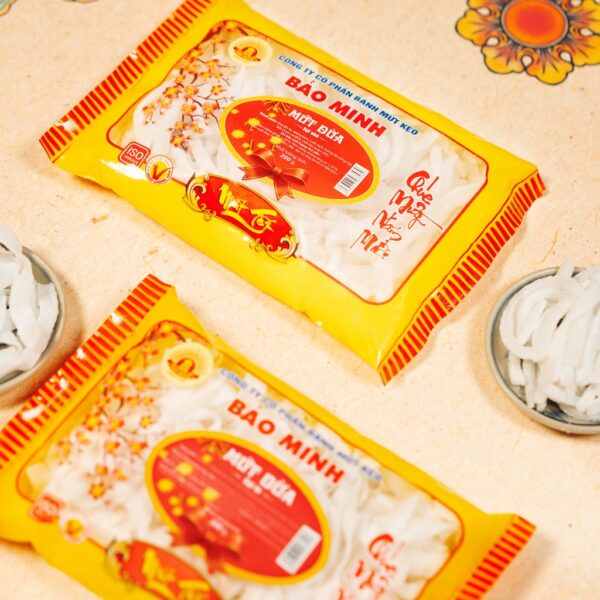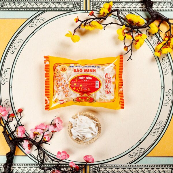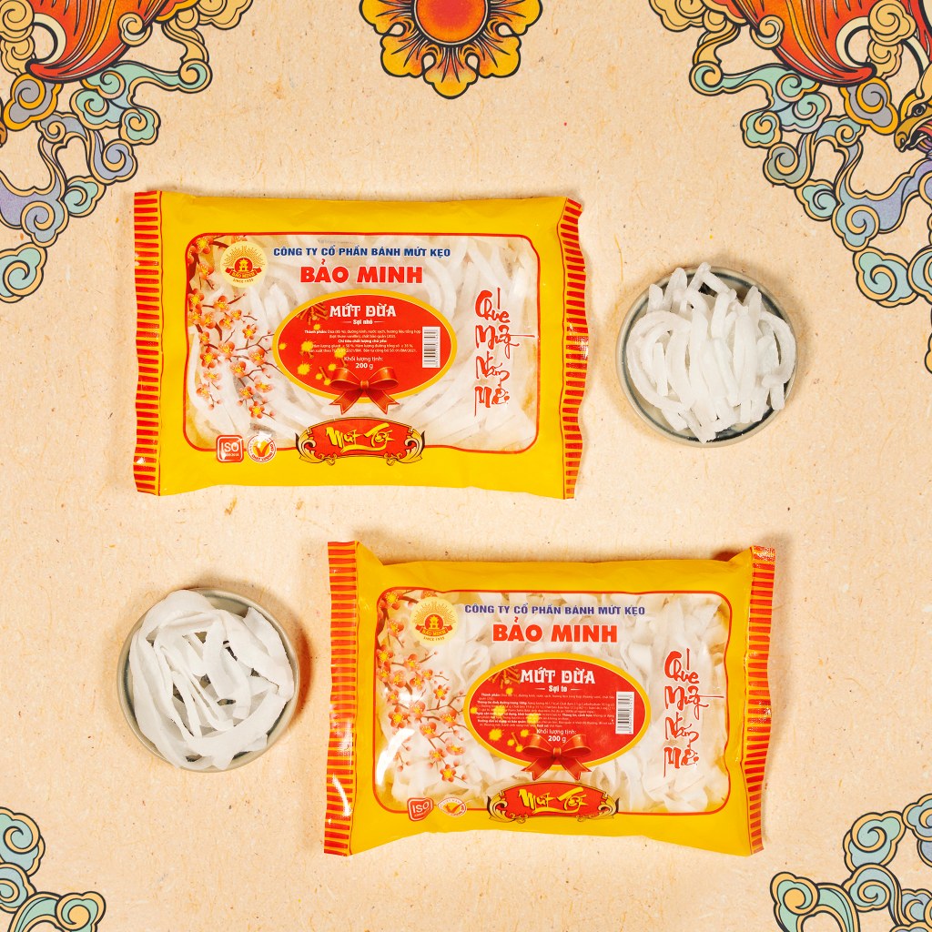 Mứt Dừa được sản xuất từ những trái dừa tươi Bến Tre. Dưới hệ thống máy móc hiện đại, áp dụng công nghệ tiên tiến trong sản xuất, Bảo Minh đã cho ra thị trường những sản phẩm Mứt Dừa sợi tươi ngon, trắng nõn.