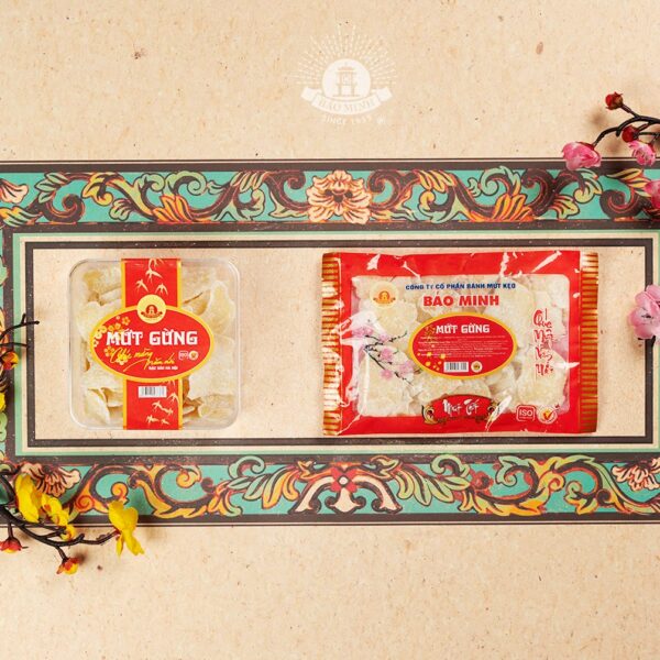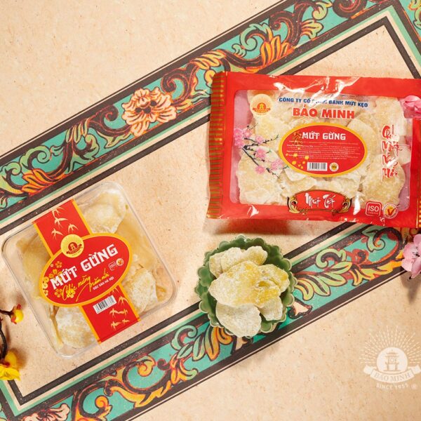Mứt gừng cũng là một sản phẩm không thể thiếu trong dịp Tết. Dưới bàn tay khéo léo của người thợ làm bánh, cùng với việc vận dụng máy móc, công nghệ hiện đại vào sản xuất, từ những củ gừng xù xì đã trở thành những miếng mứt gừng thơm, ngọt nhẹ nhưng không hề mất đi vị cay ấm.