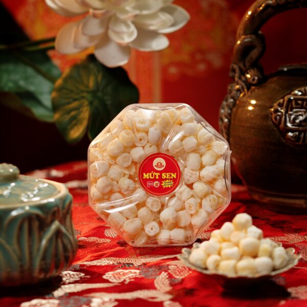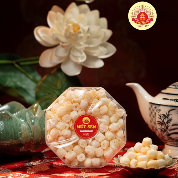 Đây là sản phẩm truyền thống của Bảo Minh. Mứt Sen được chọn lọc từ những hạt sen tròn mẩy, qua sơ chế và dưới bàn tay khéo léo của người thợ làm bánh kẹo, đã cho ra những hạt Mứt Sen giòn sần sật, bùi, thơm, ngọt thanh, không ngán.